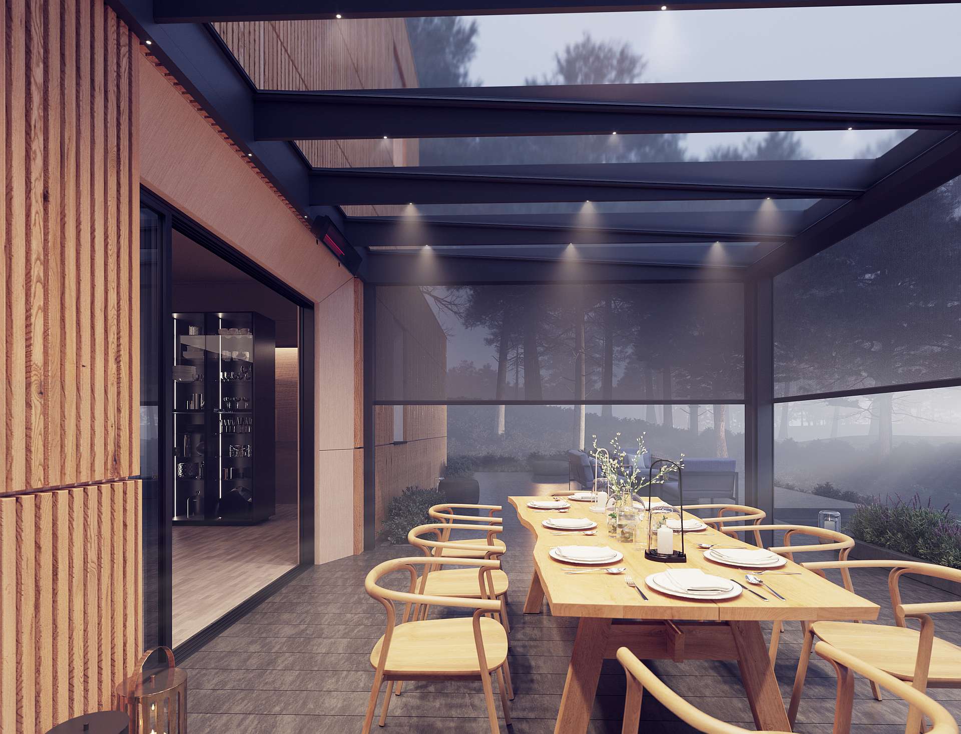 Ob luftiger Sonnenschutz im Sommer oder wohlige Wärme im Winter: Dieser zusätzliche Wohnraum unter freiem Himmel passt sich jeder Jahreszeit perfekt an.